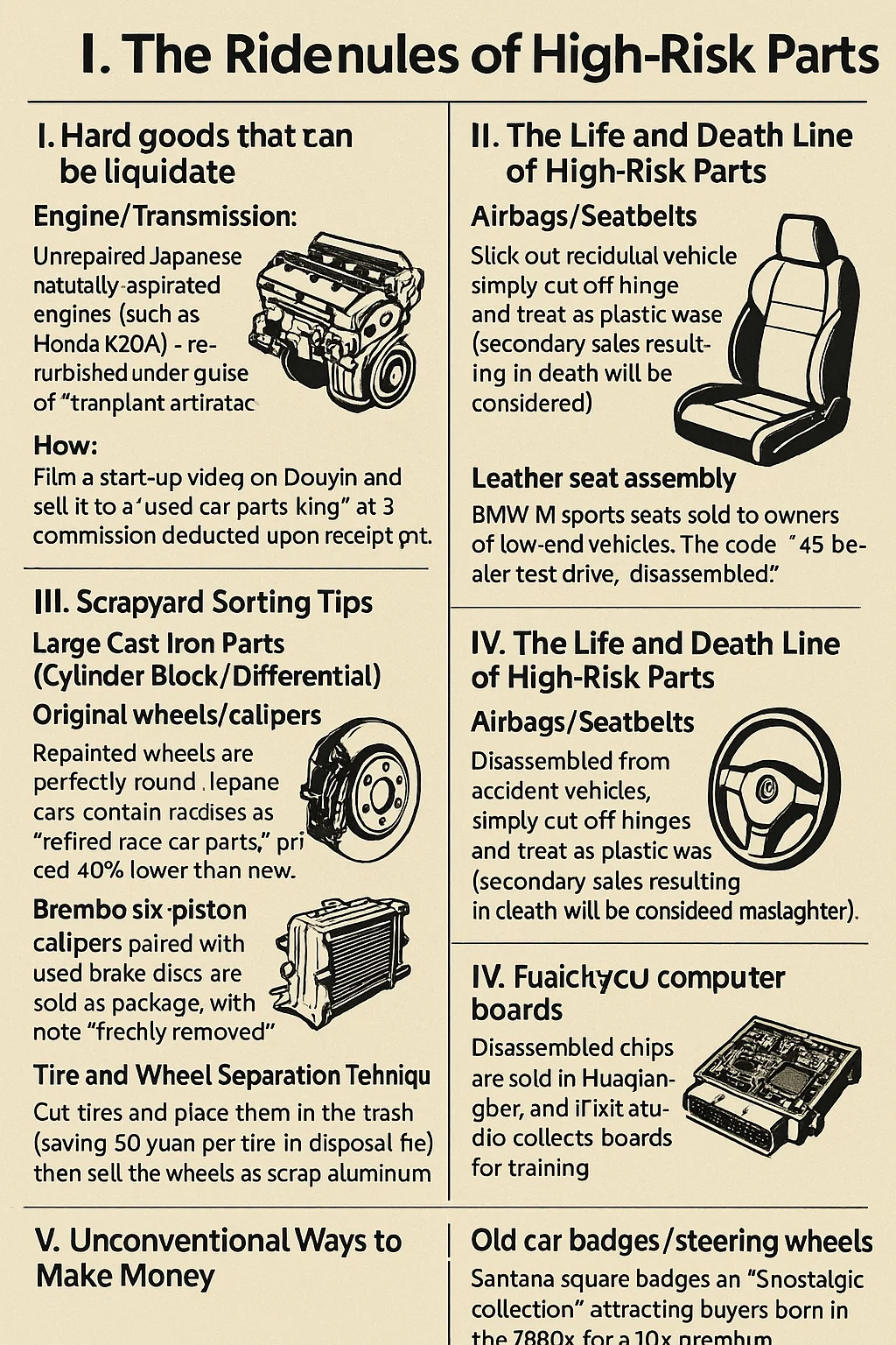 عند التعامل مع المستخدمة أجزاء السيارة ، اتبع القواعد الصارمة الثلاثة المتمثلة في "بيع ما تستطيع، وتجاهل ما يجب عليك، وتجنب المنطقة الرمادية".